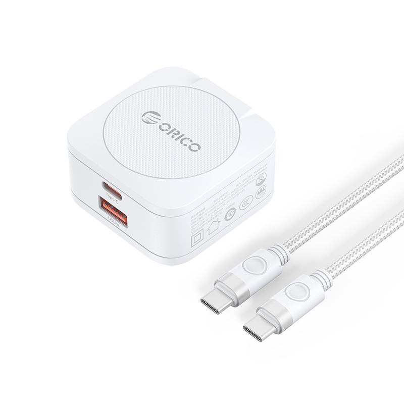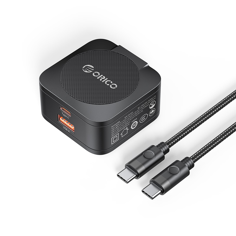 ORICO GaN 65W 90° Foldable Compact Fast Charger with USB-C and USB-A Port