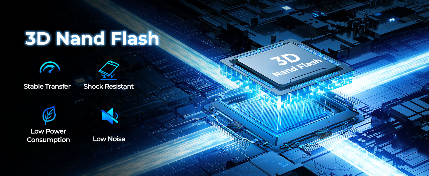 Enhanced Reliability and data safety - Unlike the existing planar NAND chips, 3D NAND flash is a type of flash memory in which the memory cells are stacked vertically in multiple layers. 3D NAND is developed to break through density limitations of the 2D planar NAND, and thus can deliver a greater level of performance and endurance.reduce cell-to-cell interference for enhanced reliability.