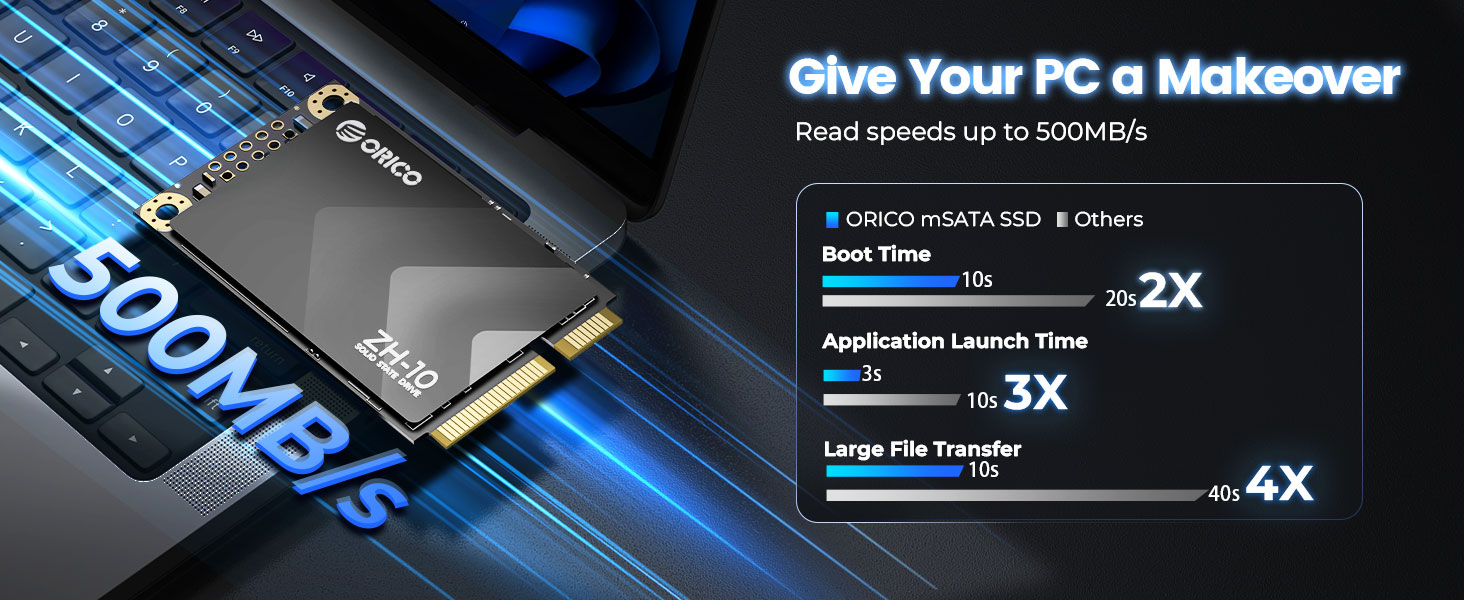 Upgrade your computer- ORICO mSATA SSD is based on 3D NAND flash technology, with speeds of up to 500MB/s read and 370MB/s write. It effectively improves boot speed, program loading and file transfer and boosts system performance.