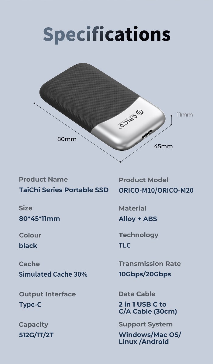 ORICO 20Gbps Business-Style Portable SSD - Taichi
