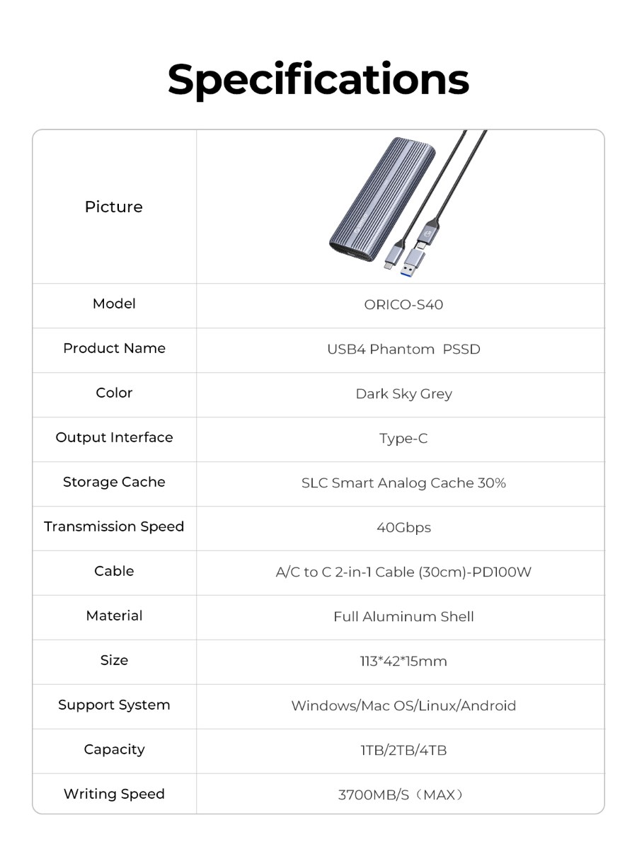 ORICO 40Gbps Striped-Style Portable SSD - Phantom