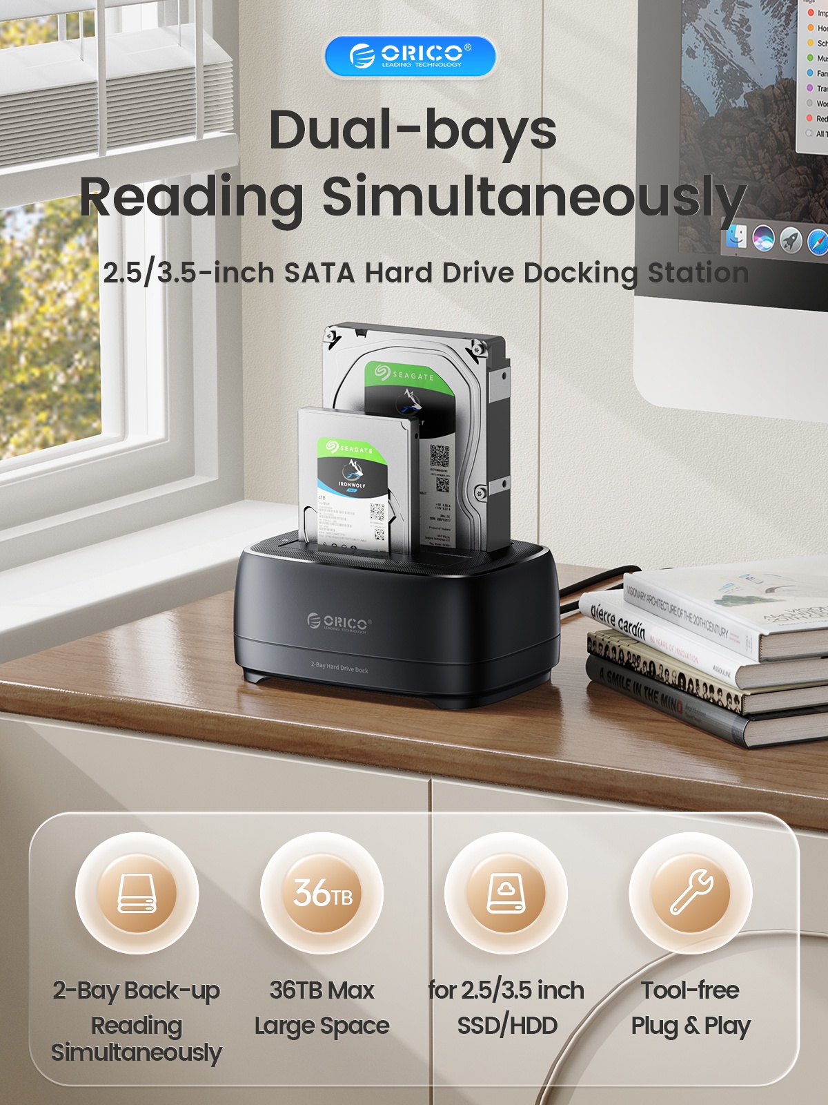ORICO Dual-Bay 3.5-Inch Hard Drive Docking Station with Offline Clone Function