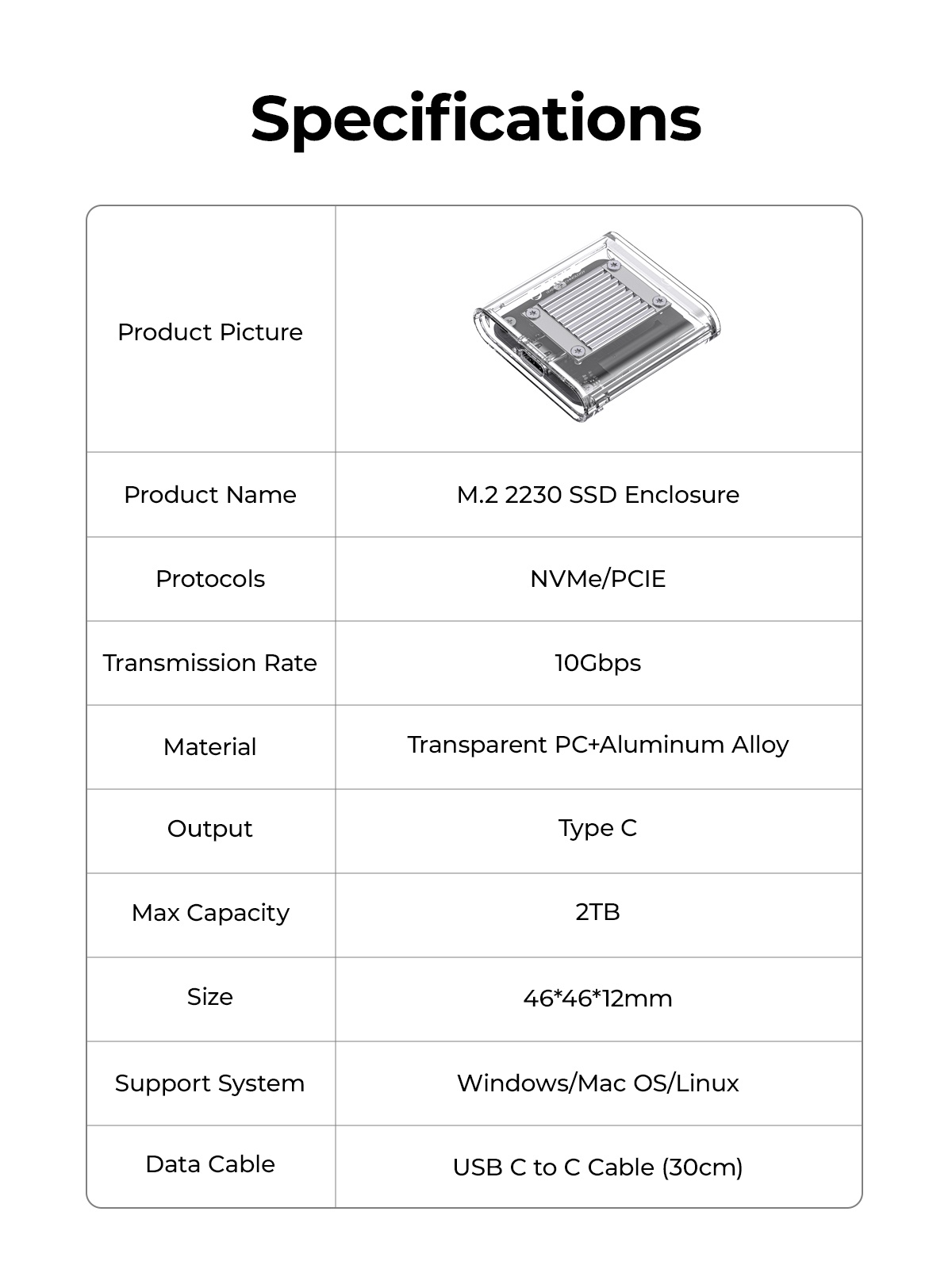 ORICO 2230 M.2 NVMe SSD Enclosure