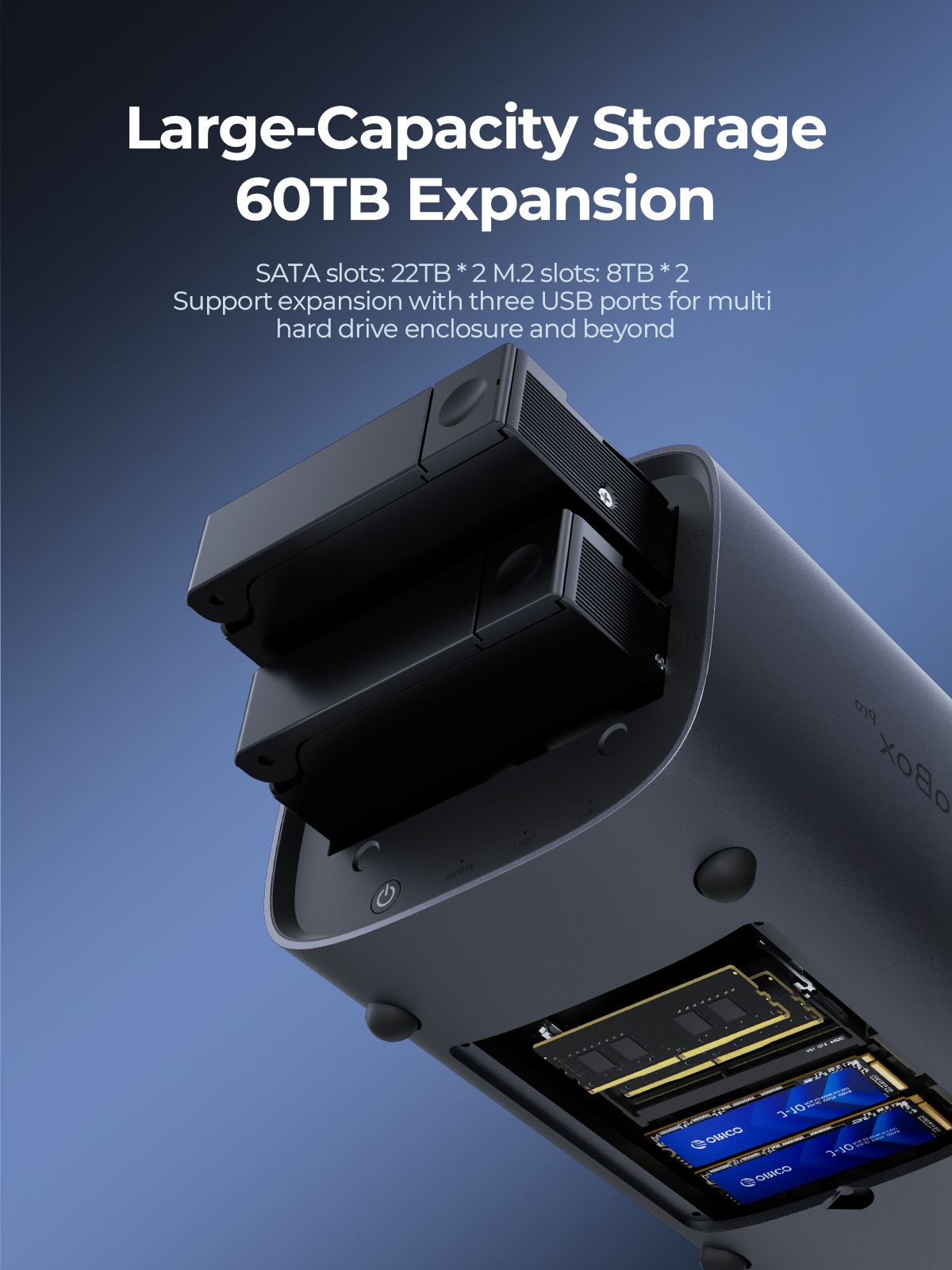 Total 60TB (2.5"/3.5" SATA 44TB + M.2 NVMe 16TB)