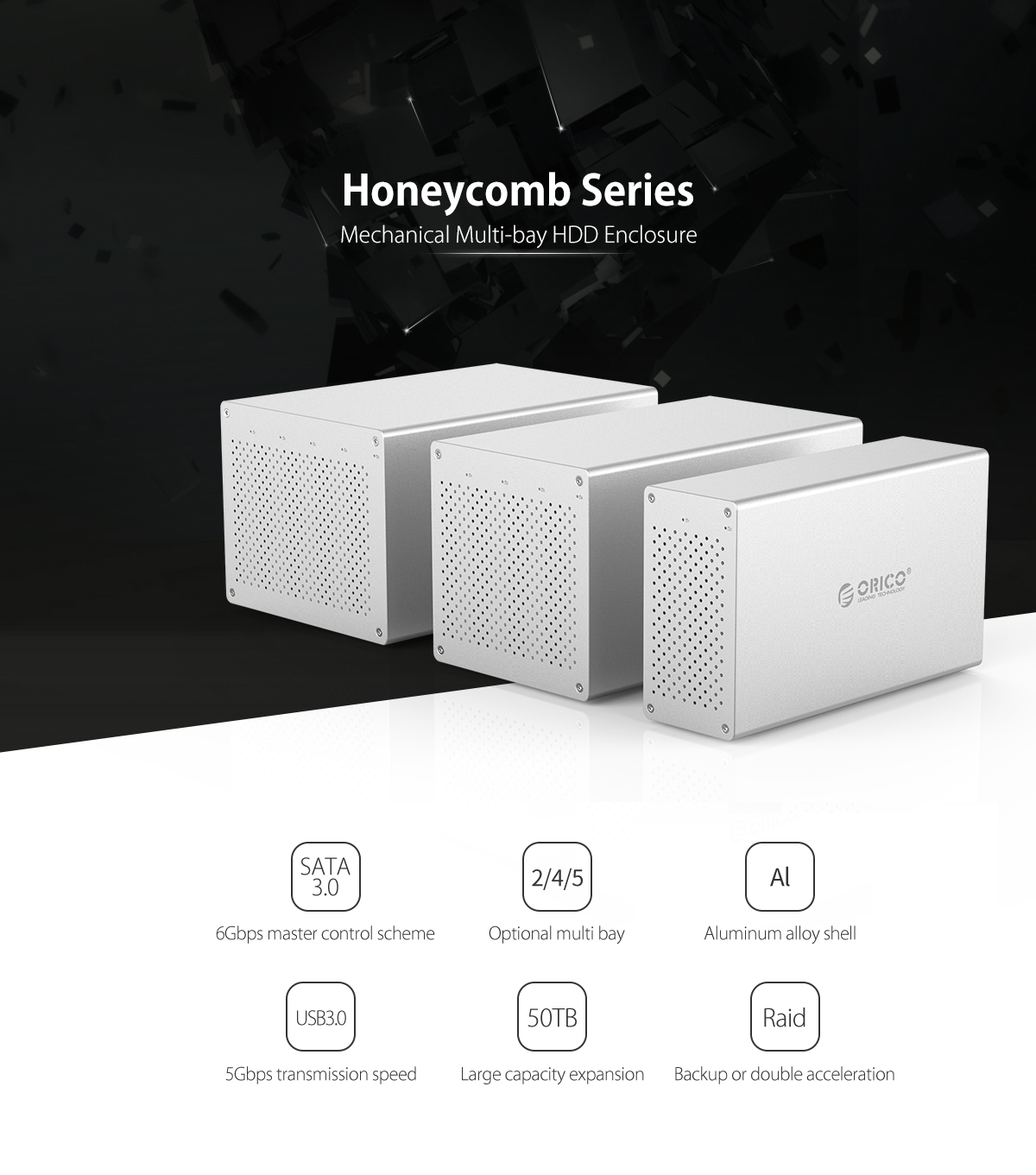 Honeycomb Series 3.5 inch 2 Bay Aluminum Alloy USB3.0 Hard Drive Enclosure with Raid