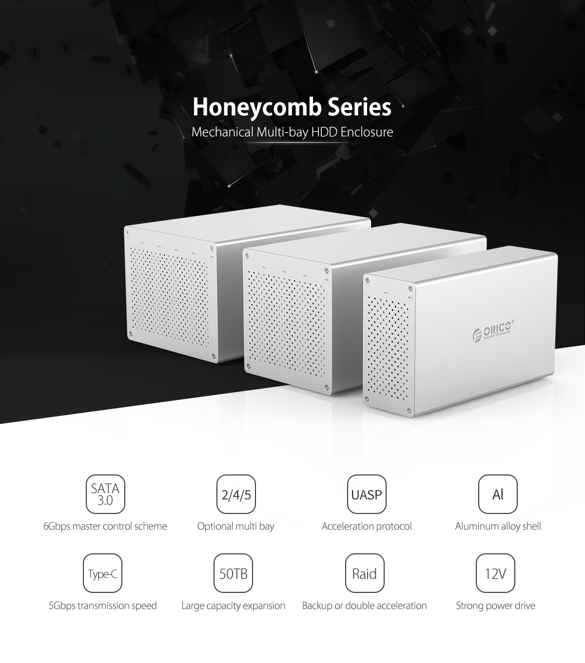 Honeycomb Series 3.5 inch 2 Bay Aluminum Alloy Type-C Hard Drive Enclosure with Raid