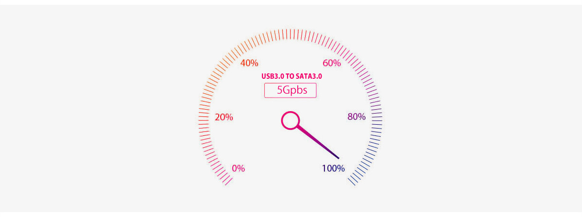 6648US3-C adopts USB3.0 to SATA3.0 bridging program whose transfer speed is up to 5 Gbps, saving much more time for you.