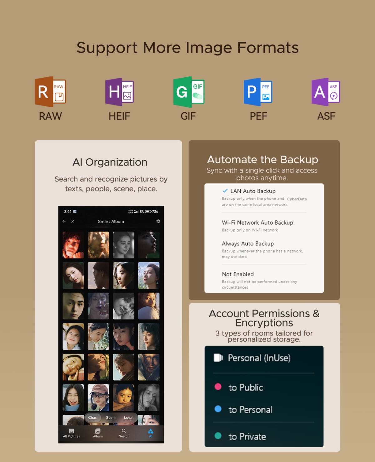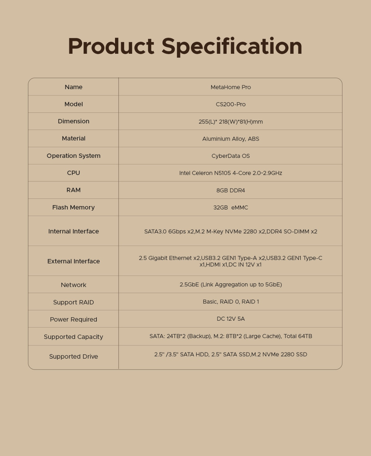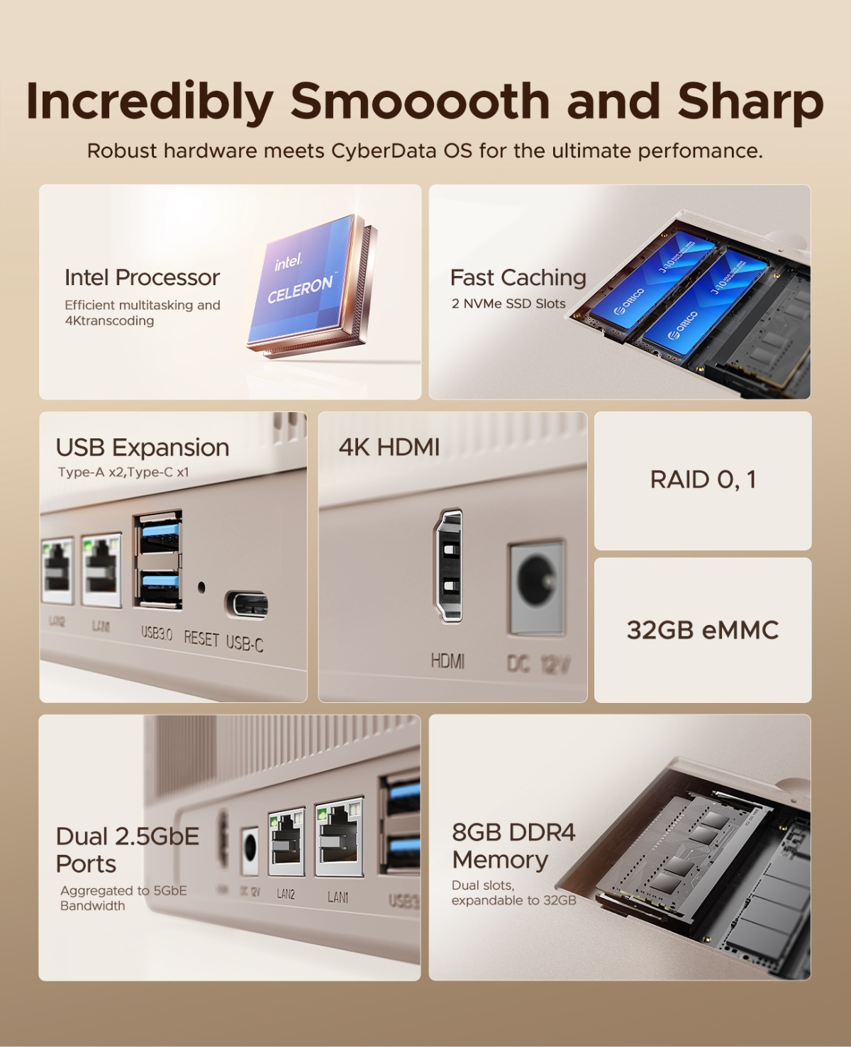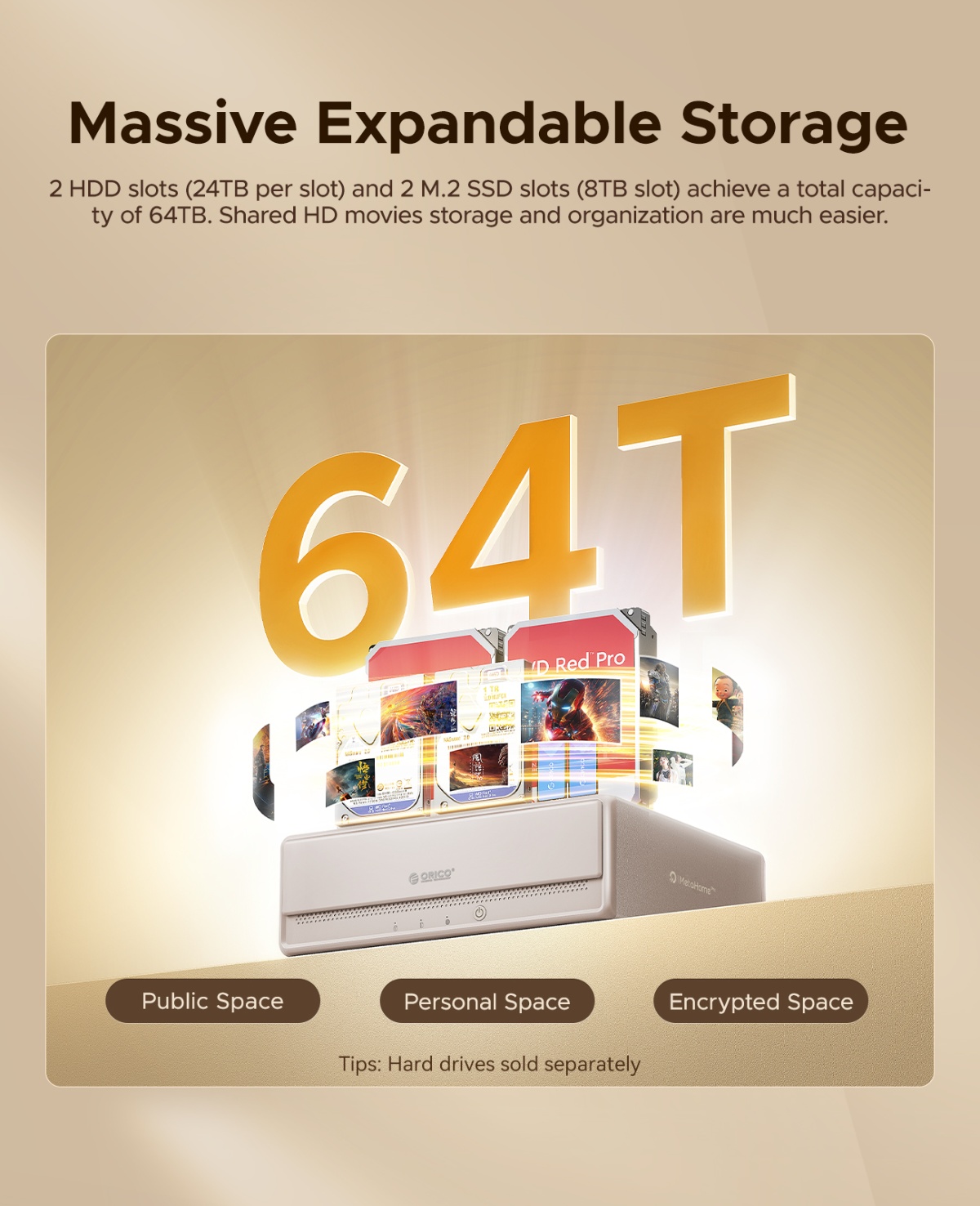 Max. 24TB HDD, Max. 8TB SSD, a Total of 64TB Expandable