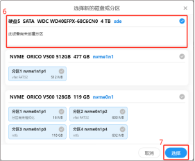 · Select the new hard drive, click "Select," and complete the replacement, as shown in the bottom-right image