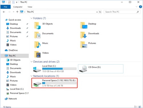 After mapping the NAS storage space to your computer via the Samba protocol, you can upload files by copying and pasting, just like with a local hard drive.