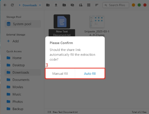 · The difference between manual filling and automatic filling lies in whether the verify code is included within the link. Manual filling requires the user to add the extraction code themselves in order to complete the download.