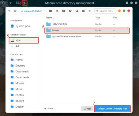 After generating a scan directory, click on "Scan" to complete the mounting of the external storage movie directory and generate a poster wall.