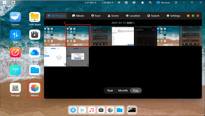 · Click on the "Album" icon on the homepage to enter the Smart Album interface. By default, the system will automatically search for image files saved on the NAS and display them.