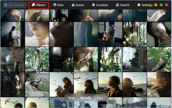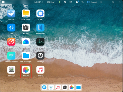 Click on the "Album" icon on the homepage to enter the Smart Album interface. By default, the system will automatically search for image files saved on the NAS and display them.