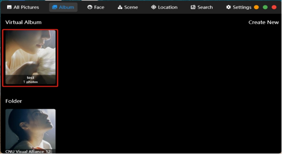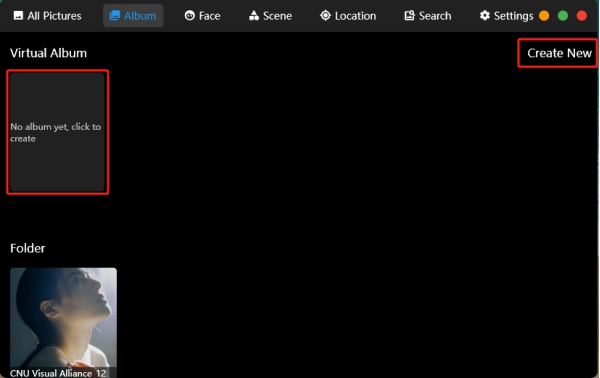 There are two options to create a new virtual album. You can click on "Click to Create" on the left side or "Create New" on the right side to complete the creation of a new albu