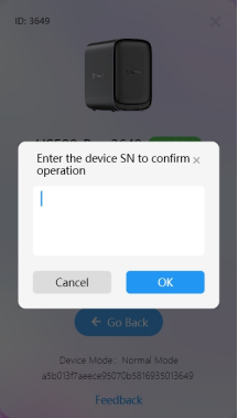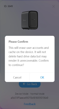 · After entering the correct SN, the reset will proceed. Once completed, the device will need to be re-bound and initialized.