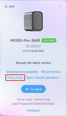 · On the device login interface, click the header image to enter the LAN advanced settings interface. Click "Force Reset" to complete the device reset.